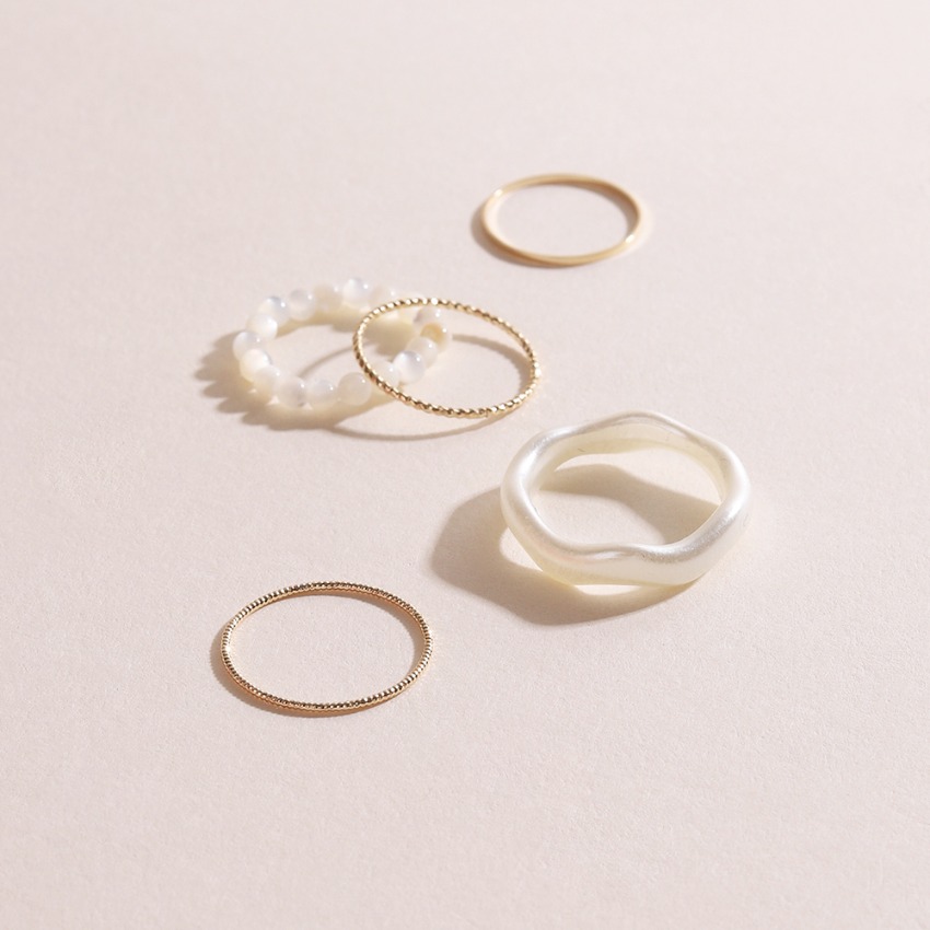 [당일] 5set 진주 비즈 반지 물결 아크릴 레이어드 실반지 세트