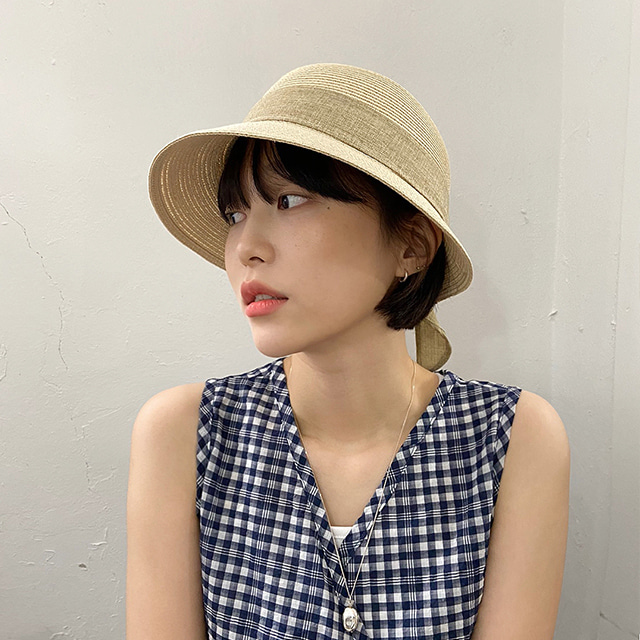 심플 린넨 리본 밀짚 페도라 버킷햇