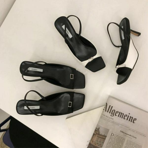 스퀘어 미니버클 스트랩 슬링백 6cm 샌들힐