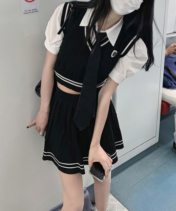 무료배송 [코디세트 셔츠+베스트+스커트] 여름축제 플리츠 3피스코디룩