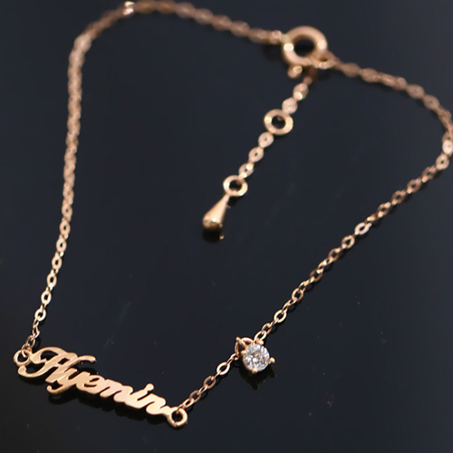 14k 커팅 큐빅 딸랑이 알파벳 이니셜 팔찌