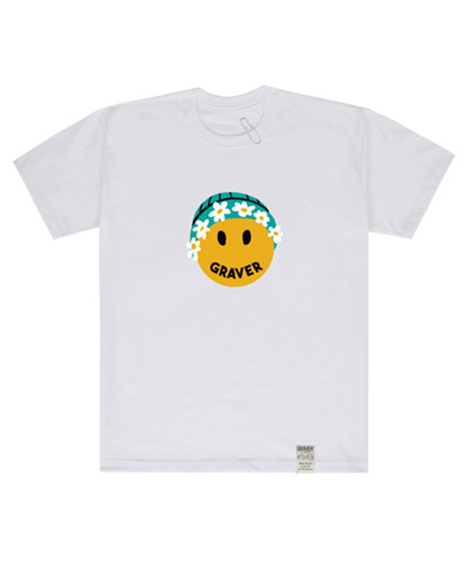 [UNISEX]빅 플라워 그린 비니 스마일 반팔티_화이트