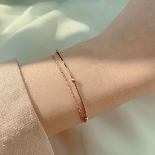 실버925 데일리 두줄 볼체인 레이어링 팔찌 2color(로즈골드 실버)