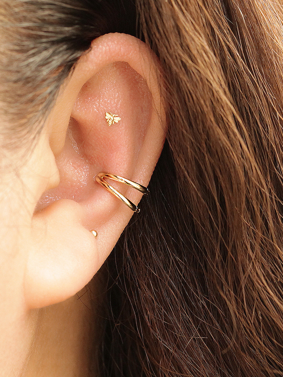 14K 두줄 원터치 이너컨츠 링 피어싱 귀걸이