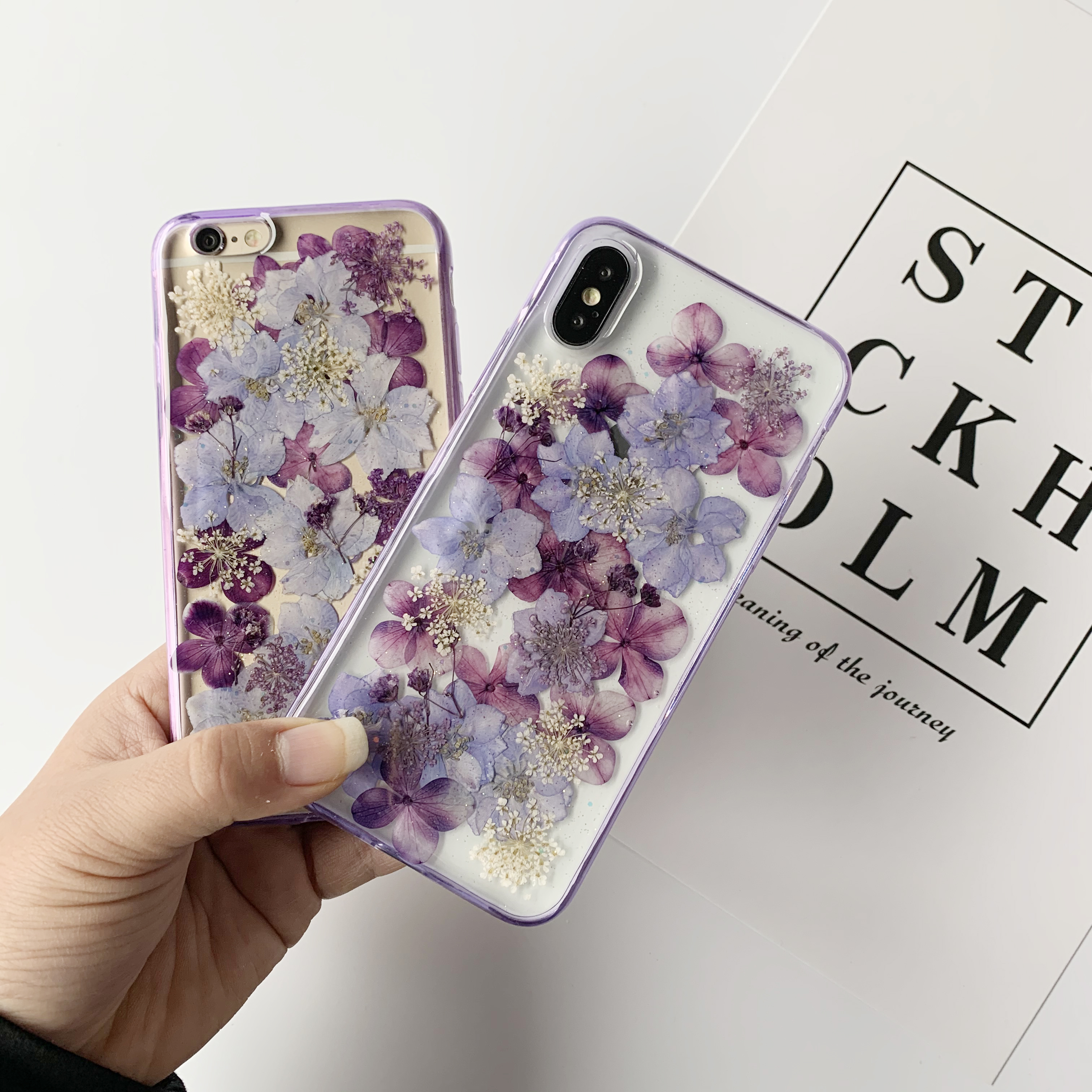 [미퓨어] 아이폰 보라색 생화 꽃 케이스