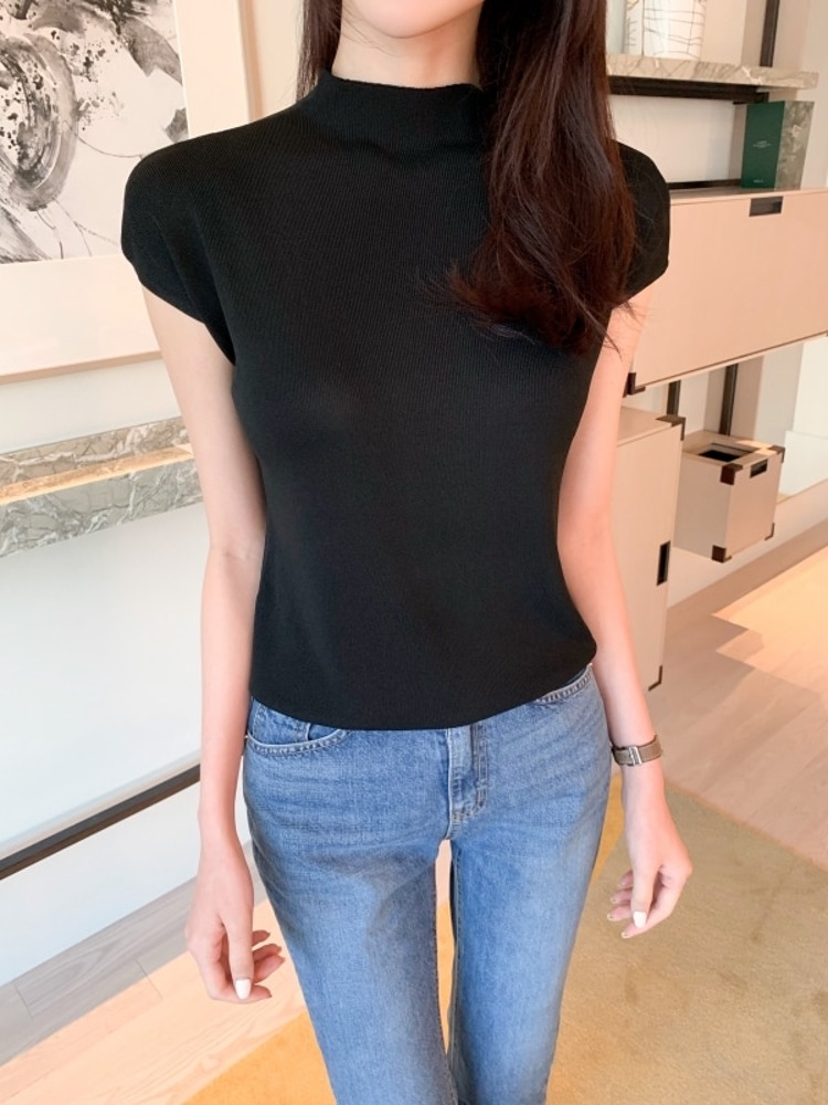 로지 여름 시보리 반목 캡소매 니트 톱 5col