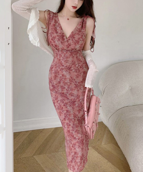 무료배송 [코디세트 가디건+원피스] 딥로즐리 롱원피스 투피스셋업