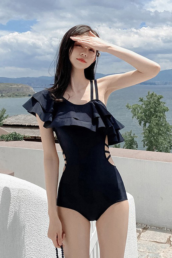 그리스 여신룩 러플 옆트임 원피스 수영복 (레드,블랙,화이트)