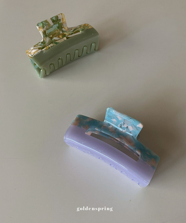 2Color [무배] 마블링 투톤 아크릴 집게핀 빅사이즈 사각 스퀘어 헤어 클립