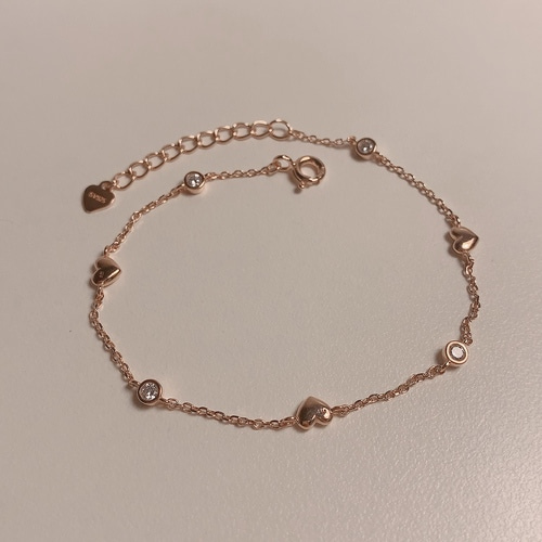 실버925 미니 하트 동글 큐빅 레이어드 팔찌 2color(로즈골드 실버)