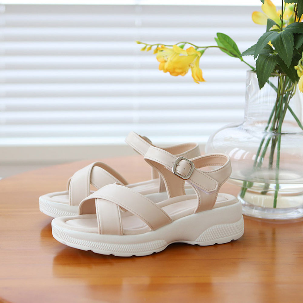 215-260 플랫폼 샌들 발볼넓은 어그 스트랩 크로스 발편한 여성 통굽 수제화 푹신한 키높이샌들 4.5cm