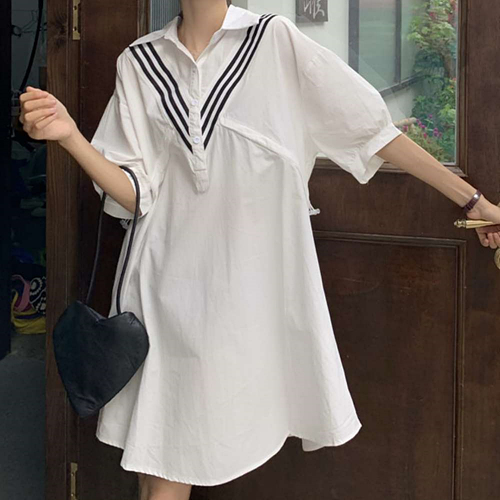 화이트 셔츠 스타일 데일리 여성 캐주얼 미디 원피스 J15