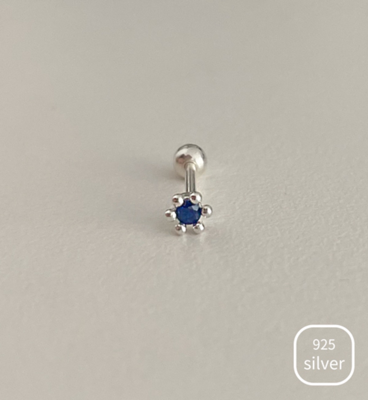 925실버 블루 큐빅 도트 꽃 피어싱 1pcs