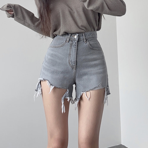 #세일 [ 넉넉기장/엉밑커버 ] 반했진 언발 데미지 찢청 여름 청반바지 (그레이,연청)