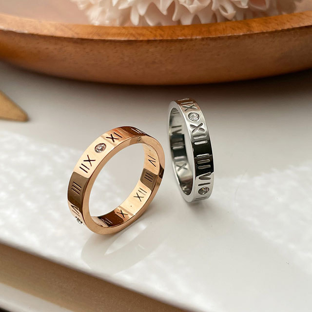 [무배] 써지컬스틸 로마숫자 큐빅 데일리 우정 반지 2color