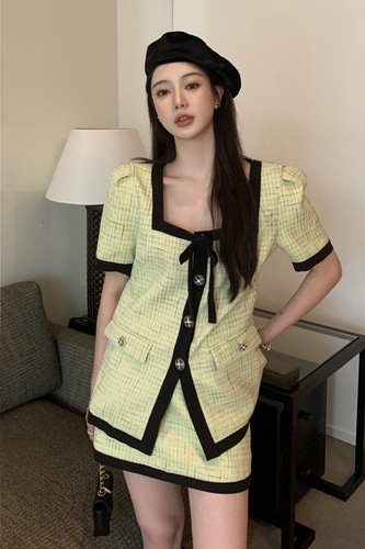 [하객룩] 라임 레몬 여름 트위드 스타일 투피스 셋업 코디 세트 소개팅룩 상견례 돌잔치SST-173