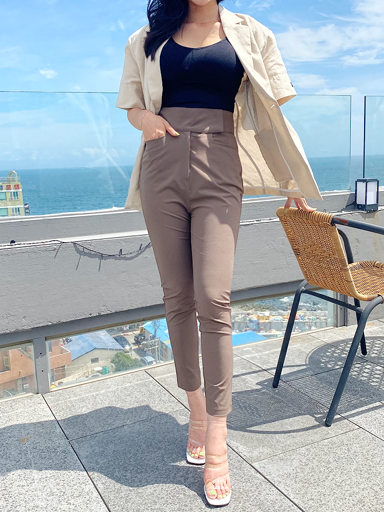 하이웨스트 9부 슬림 미쵸 슬랙스 스키니 일자 팬츠 ( 블랙 , 브라운 )