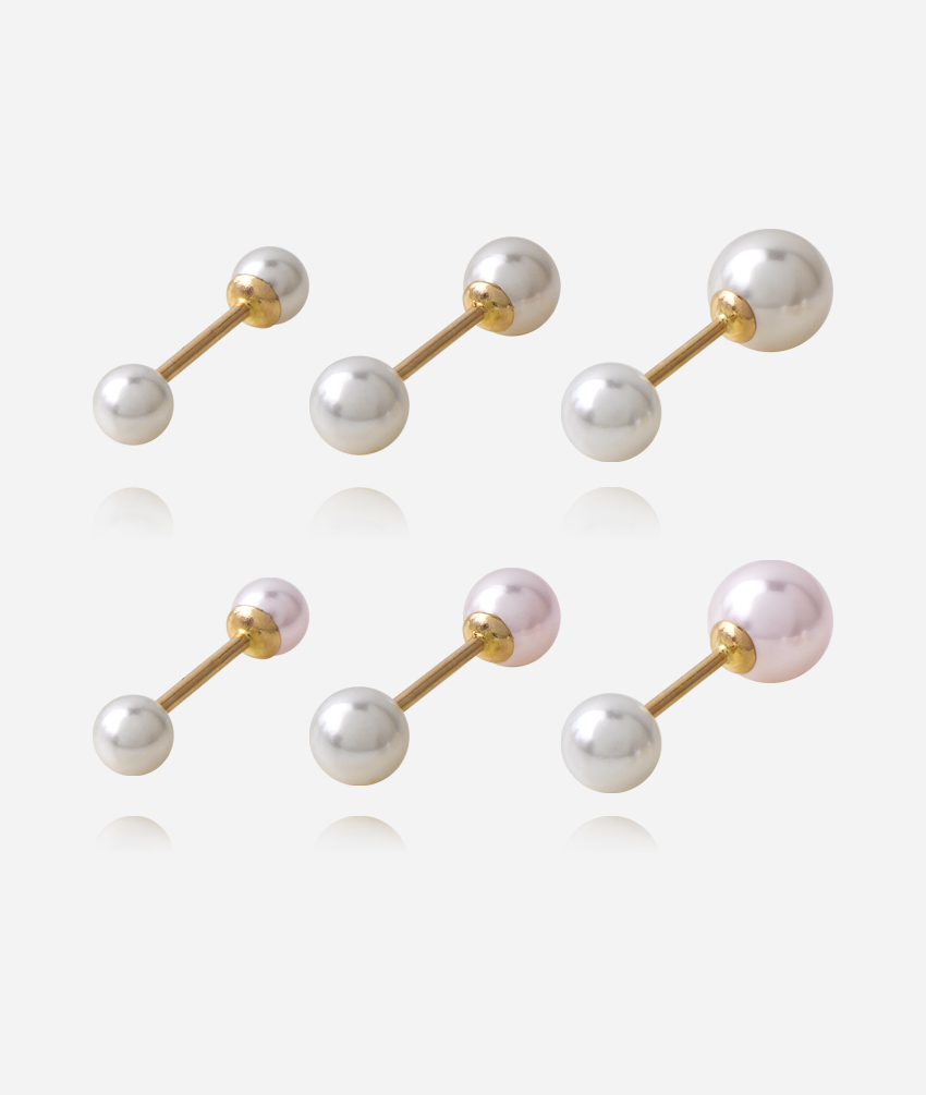 14K 피어싱 더블 미니 진주 골드 볼피어싱 바벨