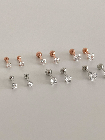 [써지컬스틸]퓨어 프레스 데일리 심플 큐빅 피어싱 귀걸이(3size/2color)