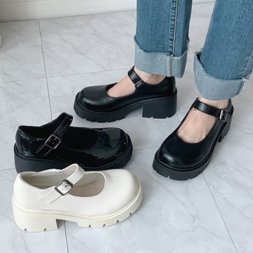 GG39 가보시 심플 베이직 캐주얼 스트랩 둥근코 에나멜 메리제인 구두 220mm 작은 사이즈 데일리 통굽 키높이 플랫폼 미들힐 신발 6cm