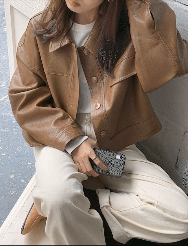 [가을신상/데이트룩] 오버핏 갈색 가죽자켓 숏 블랙 브라운 라이더자켓