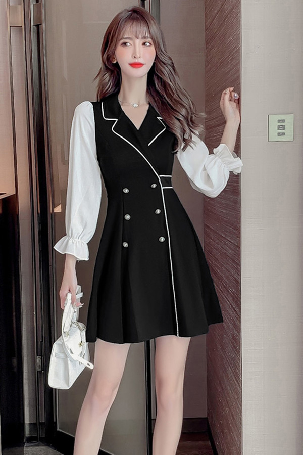 21AUG870 여자소개팅룩 시스온 소매 배색 하객룩 여성원피스