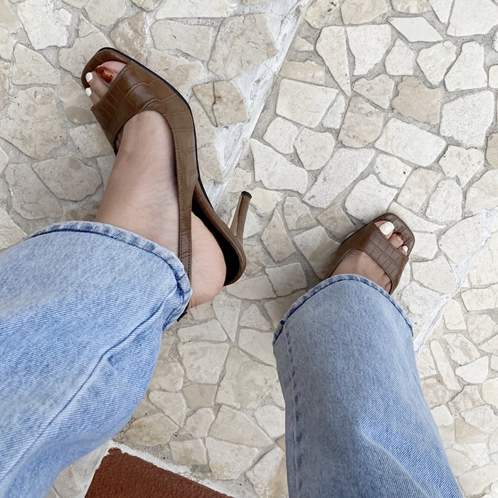 와니 패턴 스퀘어라인 토오픈 슬링백힐[2color]