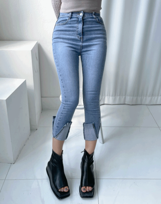 모드 트임 롤업 스키니 팬츠 (흑청/중청)
