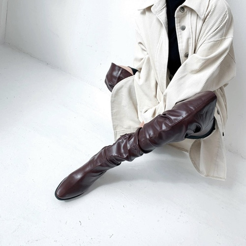 수제 링클 웨스턴 싸이하이 부츠 / 블랙 와인 아이보리