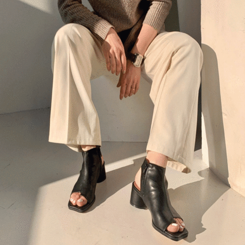 쫀쫀스판 토오픈 미들굽 물결 오픈토 힐 (2color/5cm)