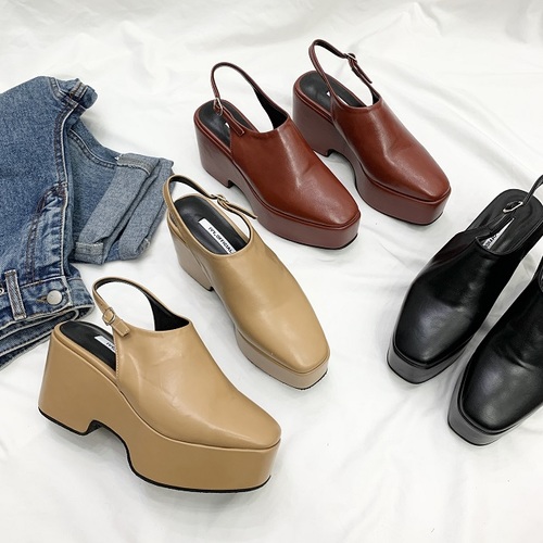 유니크 가보시 통굽 슬링백 펌프스힐 8cm