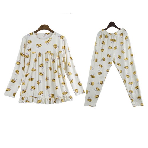 O127 귀여운 꿀벌 커플 우정 패밀리 프릴 셔링 수면 긴팔 상하복 잠옷세트,봄 가을 겨울 편한 간편한 데일리 면 폴리 스판 실내복 파자마 홈웨어