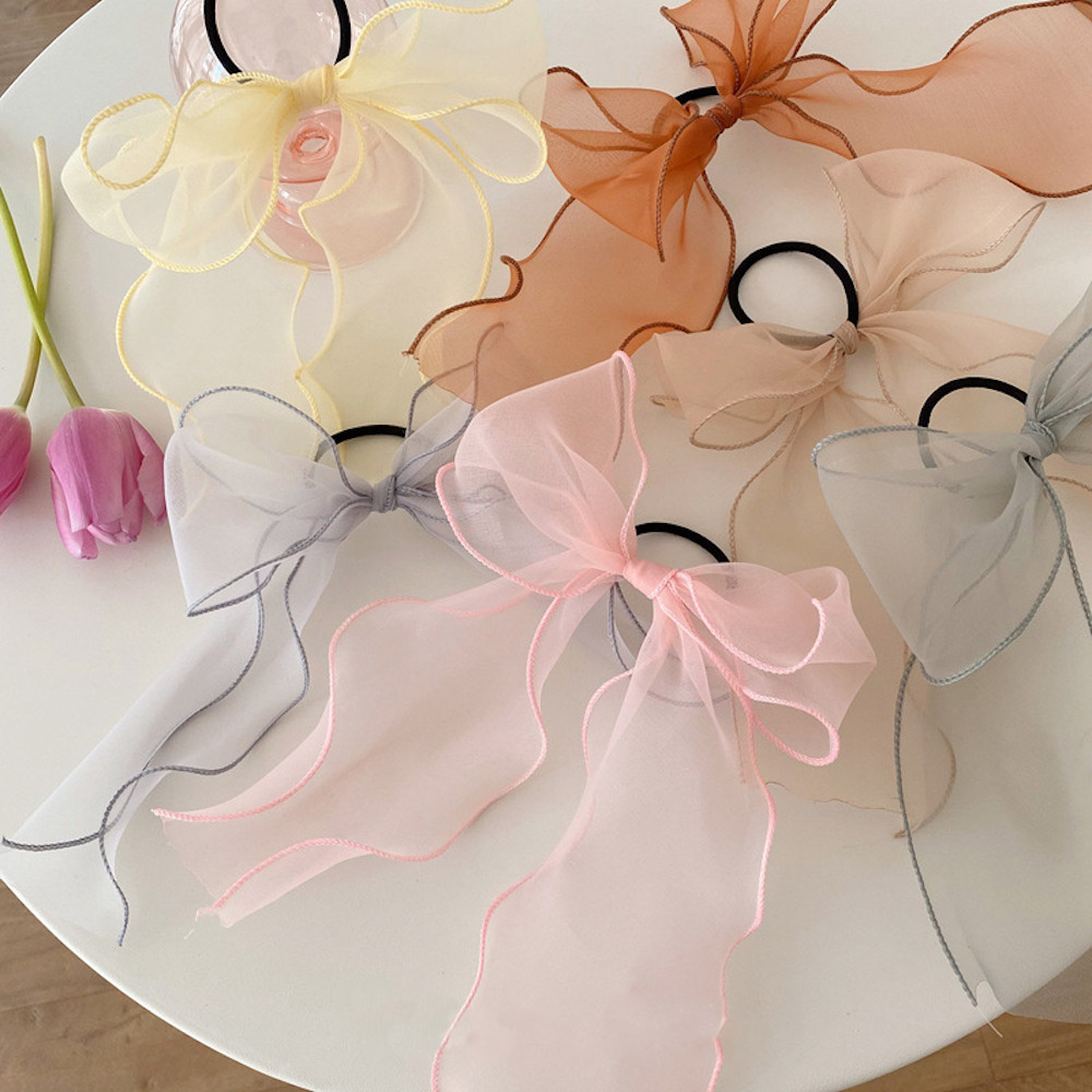 왕 리본 오간자 시스루 쉬폰 골프 스카프 머리끈 7컬러