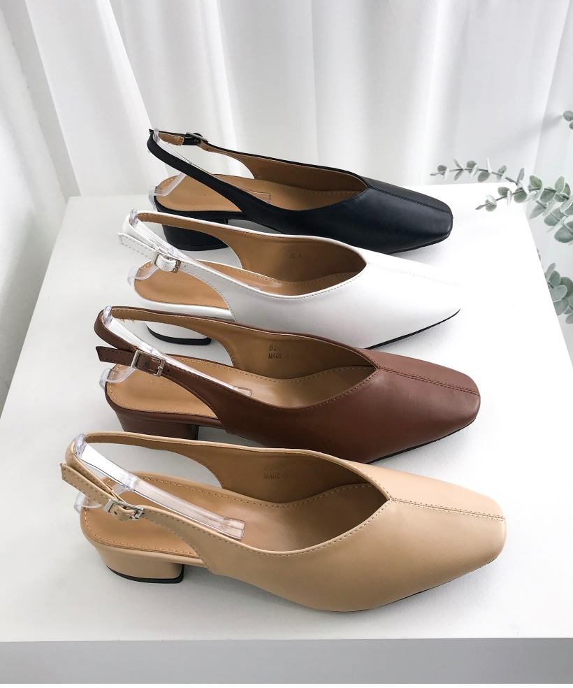 스티치 스퀘어 V 컷팅 미들굽 슬링백힐 구두 4cm