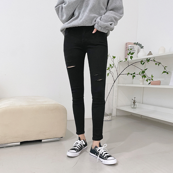 [빅사이즈 ~36]. 블랙 칼구제 스키니진.615[블랙스키니,스판스키니,검정스키니,쫀쫀블랙진,빅사이즈바지,가을빈티지]
