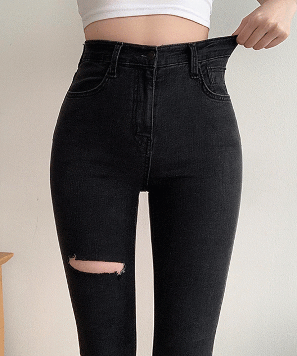 [ 대박핏보장/ 인생찢청 ] 착붙 흑청 하이웨스트 스키니