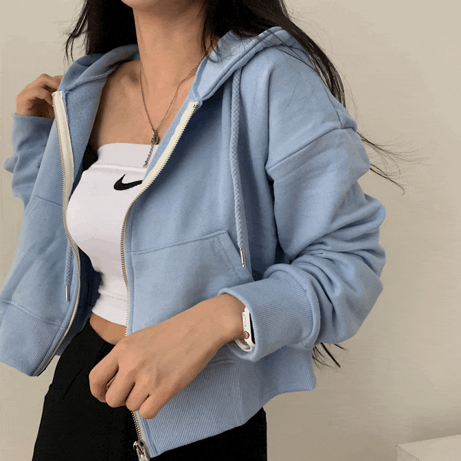 [고퀄] 3단쭈리 투웨이 크롭 후드집업;4col