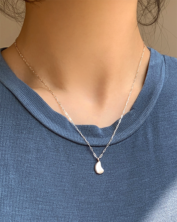 [무배] 실버925 플랫 빈 팬던트 사각 체인 목걸이