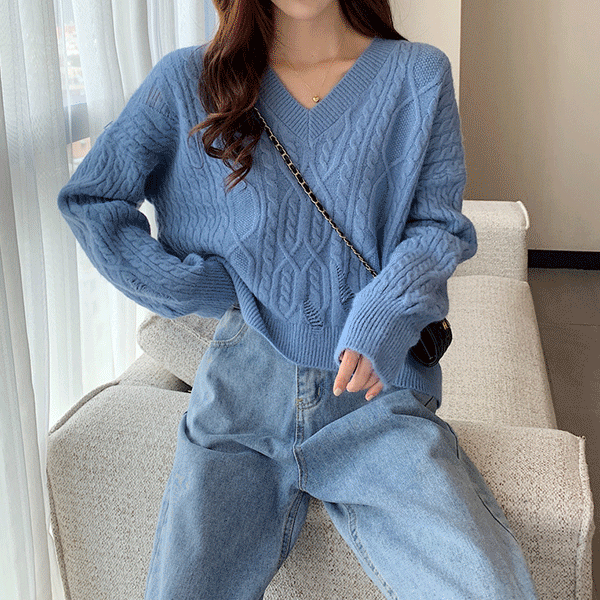[⏰오늘만! 만원딜+당일배송] 캔디스 브이넥 긴팔 니트