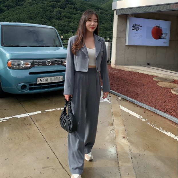 가을 크롭 자켓 와이드 밴딩 슬랙스 통 바지 여성 세미 정장 셋업 수트 투피스 코디 세트