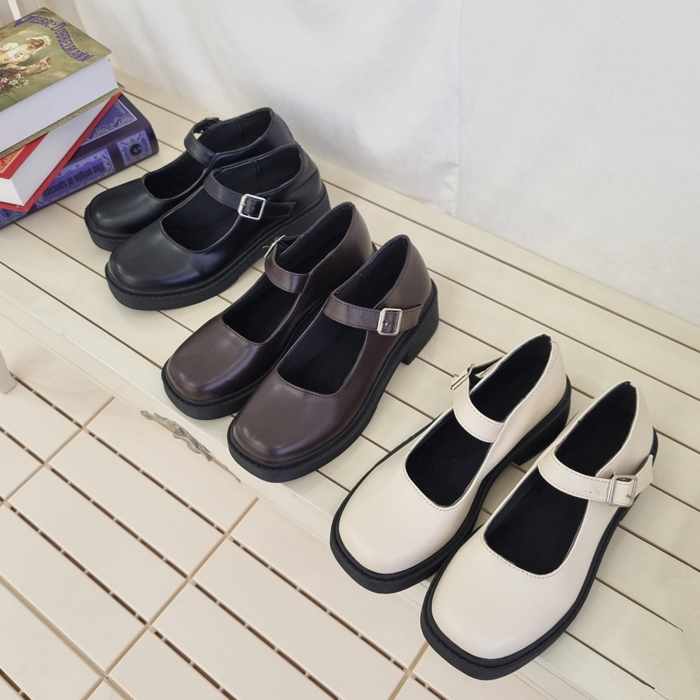 [푹신한 쿠션] 스퀘어토 스트랩 반도 통굽 메리제인 로퍼 단화 4cm