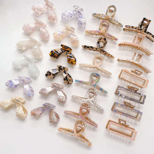 고급 프랑스 자개 마블 골드 메탈 올림머리 꼬임 집게핀 숱많은 긴 머리