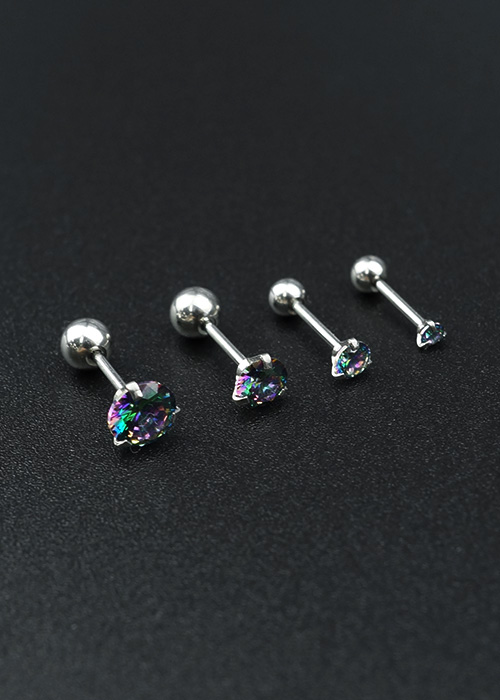 써지컬스틸 2, 3, 4, 5, 6mm 오로라 컬러 큐빅 베이직 바벨 피어싱 P-0261