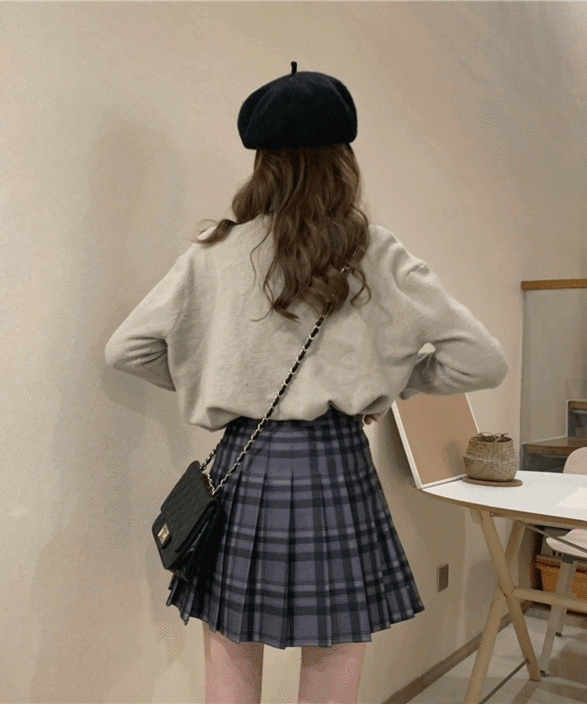 [하이틴감성!] 하이웨스트 체크 무늬 플리츠 치마