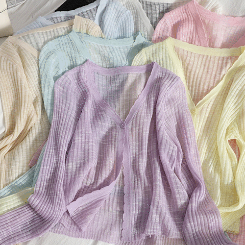 [당일출고블랙/8컬러/여름가디건]물결 레이스 얇은 니트가디건 브이넥 긴팔 셔츠 여름 자켓 여리 스위트 루즈핏 크롭 가디건 화이트 옐로우 퍼플 민트 블랙 핑크 블루 청순 코디