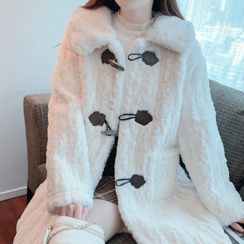 [겨울신상/겨울코트]퍼카라 화이트 떡볶이코트 미디코트 겨울 모직자켓 아우터 양털자켓 핑크 공주 하객룩 데이트룩 오피스룩 학생 코디