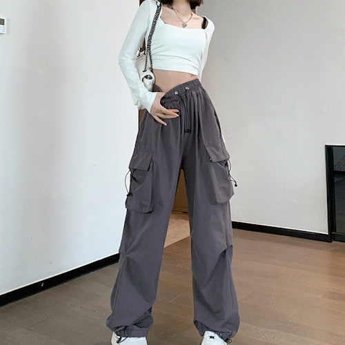 [여름신상/캐주얼]스트릿 카키 카고바지 스트링 길이조절 밴딩 조거팬츠 하이웨스트 아메카지 블랙 트레이닝 추리닝 댄스 운동 건빵바지 고프 코어룩 스트릿 하렘팬츠 빅사이즈 66-77 코디