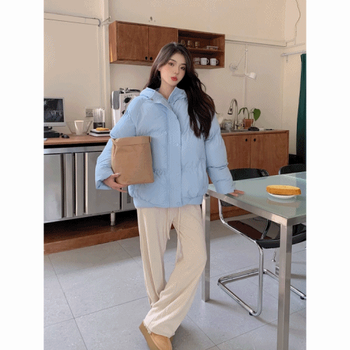 [겨울신상/빅사이즈]클라우디 하늘색 후드 숏패딩 코튼 다운패딩 귀여운 교복 코디 데일리 직장인 출근룩 꾸안꾸 마실룩 도톰 따듯 캐주얼 반코트
