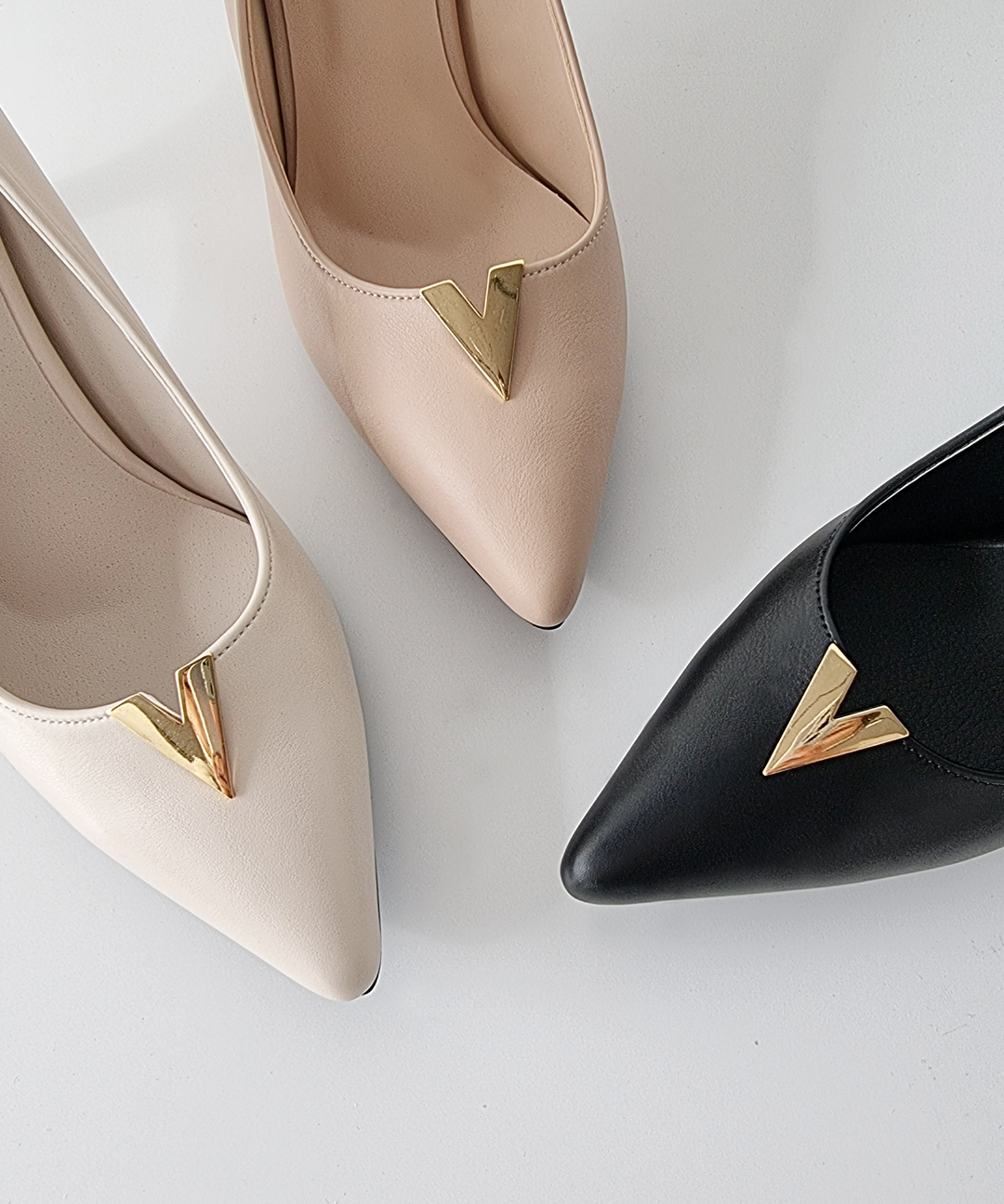 국내제작 골드 브이장식 스틸레토 펌프스 힐 7cm