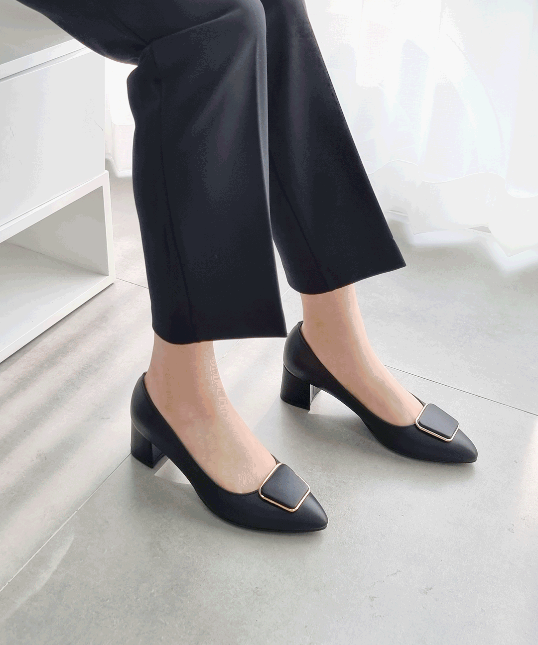 국내제작 225~265mm 발편한 스퀘어 장식 빅사이즈 펌프스 힐 5cm